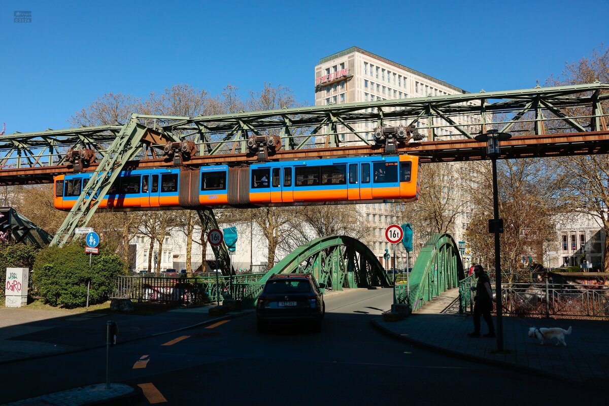 Schwebebahn Gtw 14/27 "Retro-Design Gtw 72" in Wuppertal, April 2026.