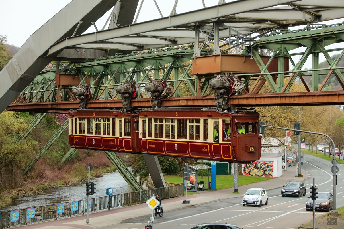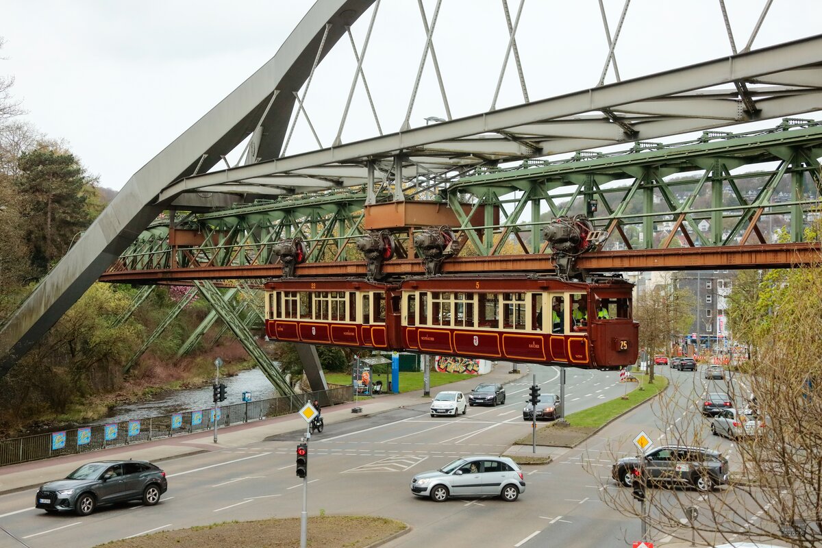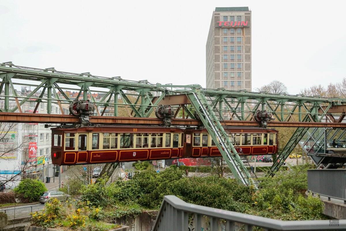 Ein sehr dynamisch wirkendes Bild von der Schwebebahn....über der so