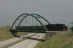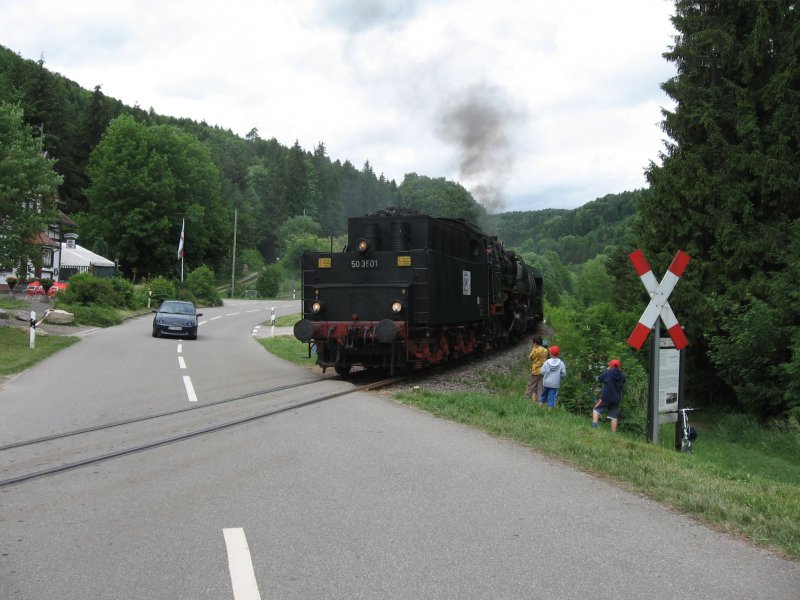 BR 50 3501 überquert den Bü am Hp. Lausheim-Blumegg am 27.5.07(30 Jahre Sauschwänzlebahn)
