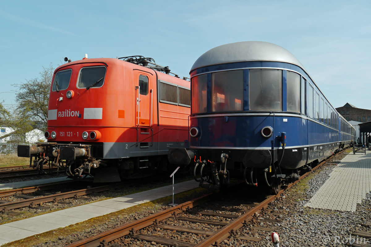 Dieser Gesellschaftswagen Bauart WGüg 827 wurde 1940 als 3. Klasse-Schnellzugwagen in Dienst gestellt und nach dem Krieg von der DB zu einem Schlusswagen mit Aussichtskanzel für den luxuriösen Fernschnellzug "Blauer Enzian" umgebaut. (DB-Museum Koblenz, September 2021) Christian Bremer