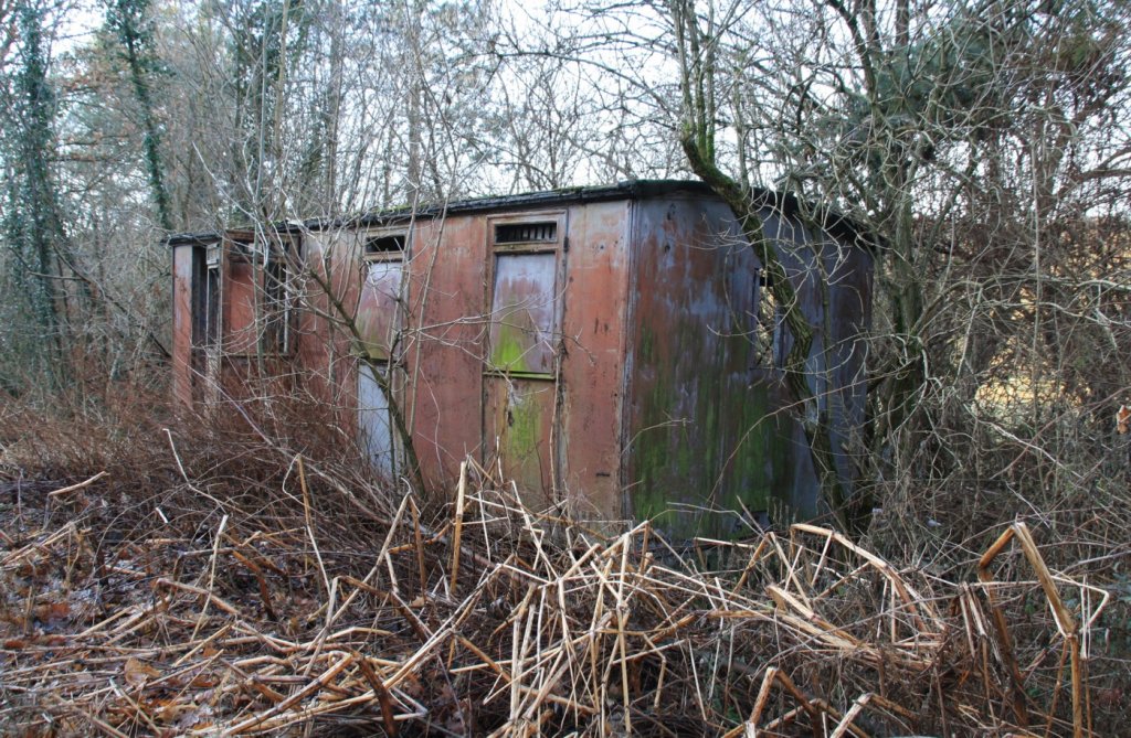 28.6.2014 Bernau / Schönow. Alter Wagen der (vermutlich weil naheliegend) Berlin-Stettiner Eisenbahn als Wochenendhaus. Vorbesitzer meint, der Wagen sei um 1928 dorthin gekommen.