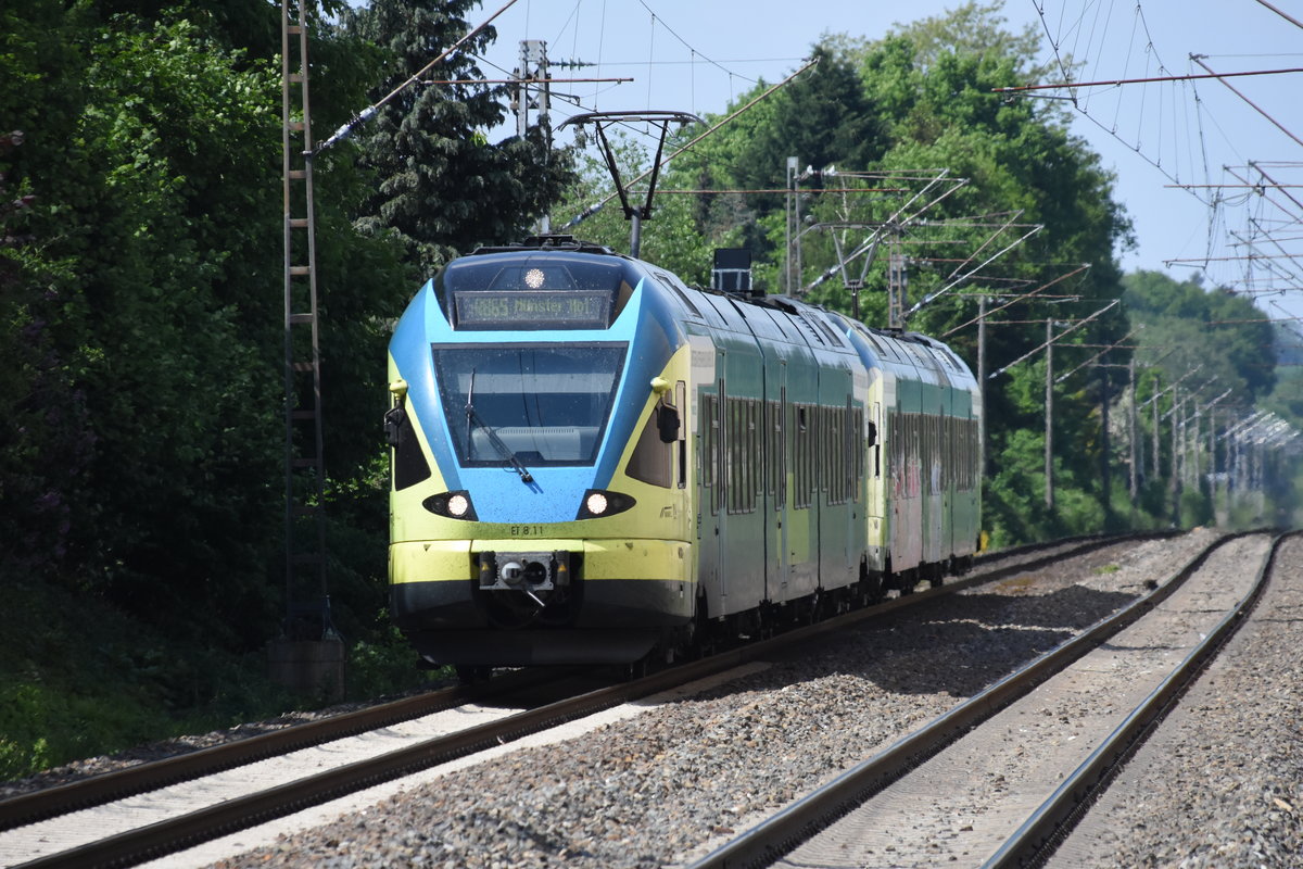 RHEINE (Kreis Steinfurt), 09.05.2018, ET 8.11 der Eurobahn (hier noch im Outfit der Westfalenbahn) als RB65 nach Münster Hbf bei der Einfahrt in den Bahnhof Rheine-Mesum Reinhard Zabel