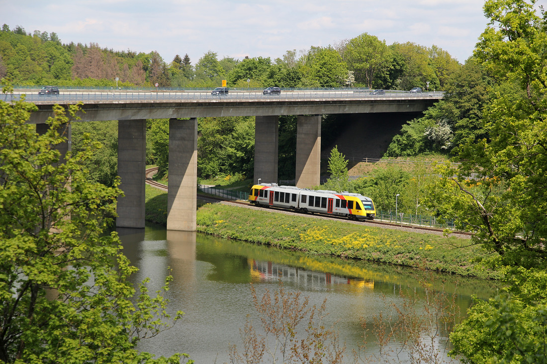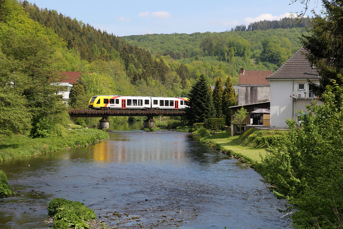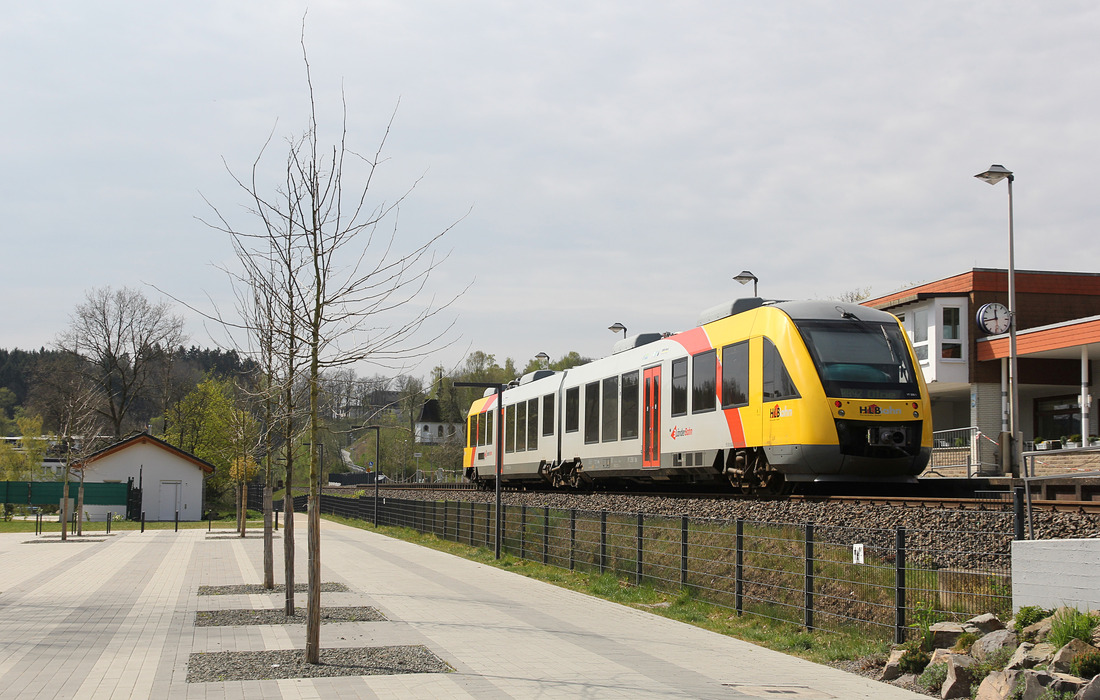der LINT-Triebwagen der HLB als RB 92 "BIGGESEE-EXPRESS" am 22.8.2017 auf