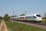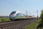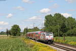 Am Nachmittag des 22.04.2020 fuhr 146 227-4 "Bahnprojekt Stuttgart-Ulm" mit ihrem RE (Freiburg (Brsg) Hbf - Basel Bad Bf) südlich von Buggingen über die Rheintalbahn in Richtung Müllheim (Baden), wo sie ihren nächsten Halt einlegen wird.