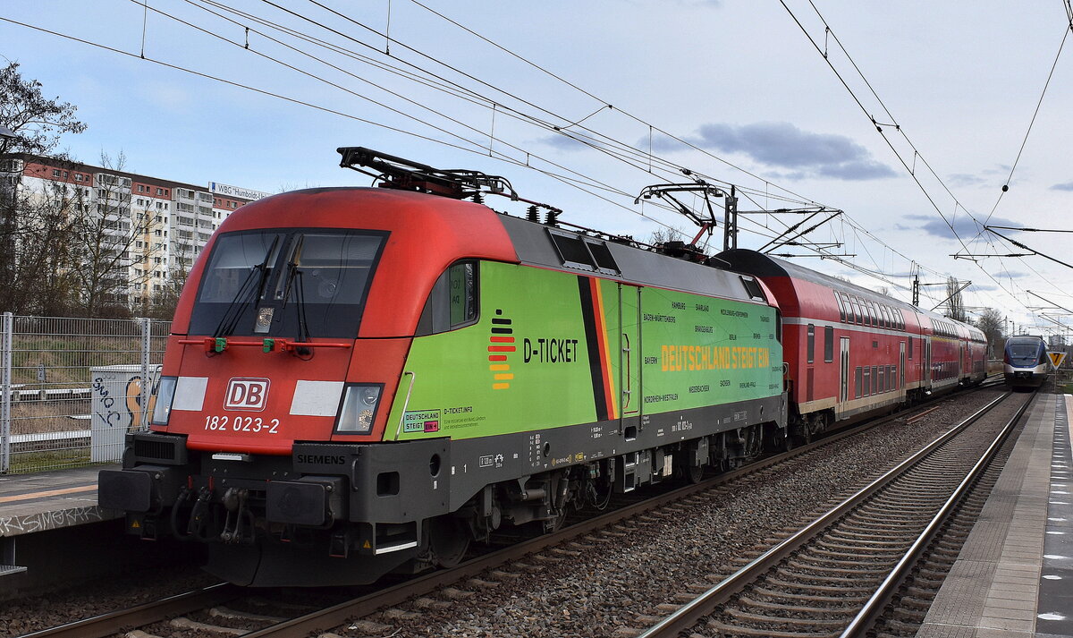 DB Regio AG - Region Nordost mit ihrer "182 023-2" (NVR: "91 80 6182 023-2 D-DB") als RB32 nach Oranienburg bei der Einfahrt im Bahnhof Berlin-Hohenschönhausen am 23.02.24
