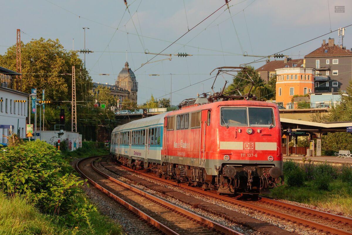 DB 111 137-6 mit RE13 Ersatzzug "Maas-Wupper-Express" in Wuppertal, Juli 2025.