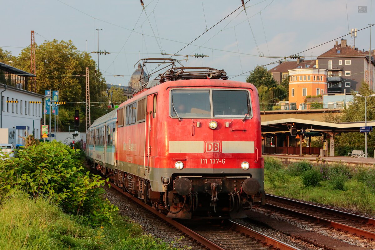 DB 111 137-6 mit RE13 Ersatzzug  Maas-Wupper-Express  in Wuppertal, Juli 2025.