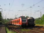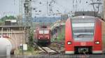 Hochbetrieb auf der Kölner Hohenzollernbrücke: Während 425 600-4 und 146 021 nach Köln Hbf. unterwegs sind, kommt ein 423 als S 11 aus der Gegenrichtung (13.12.2013)