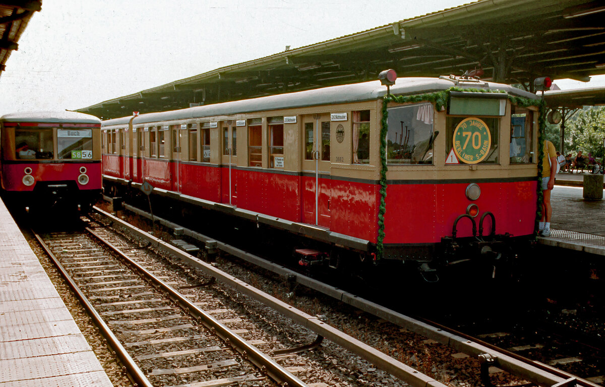 S-Bahn j.w.d, im Jrünen- ganz weit draußen, im Grünen.