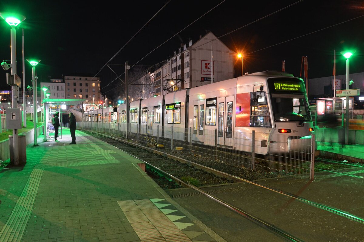 der Telekom-Werbewagen 4236 fährt in Richtung Lörick in Kürze in den Tunnel.