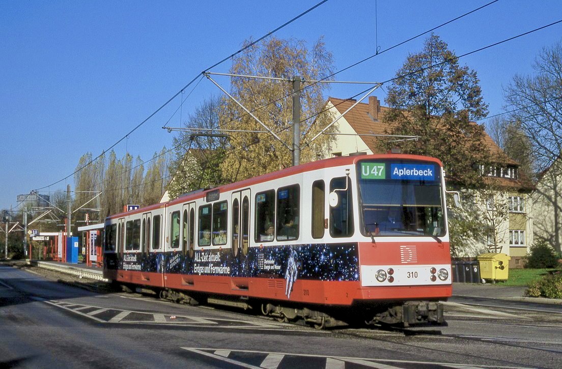 Zwar verlaufen grosse Teile der Dortmunder U 42 im Untergrund oder in Troglage, dennoch gibt es die eine oder andere Fotostelle, die fast noch dörflichen Charakter aufweist wie hier auf dem Kruckenweg mit dem B80D (Vamos) 383 am 18.06.2025 in Dortmund-Barop Horst Lüdicke