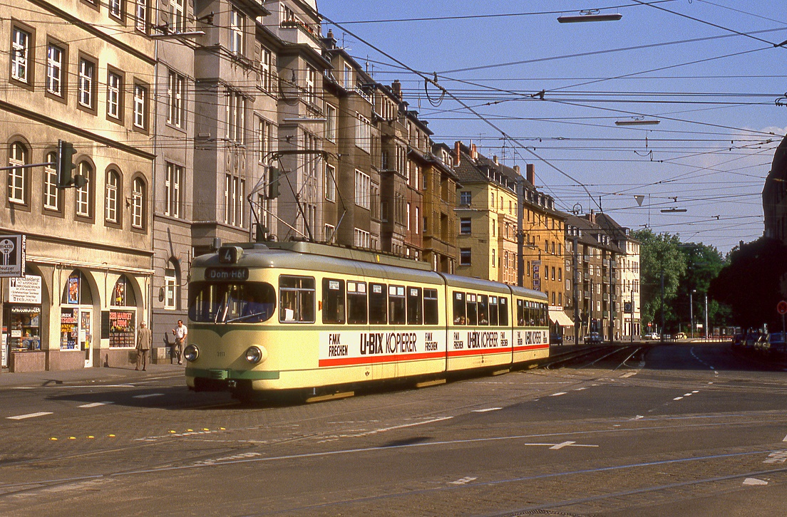 TW 2309 Als Linie E7 nach Poll und TW 1877 (Colonia-Express) am 22.7.06 (Letzter Einsatztag von Achtachsern im Planeinsatz) aufgenommen an der Haltestelle "Neumarkt"
