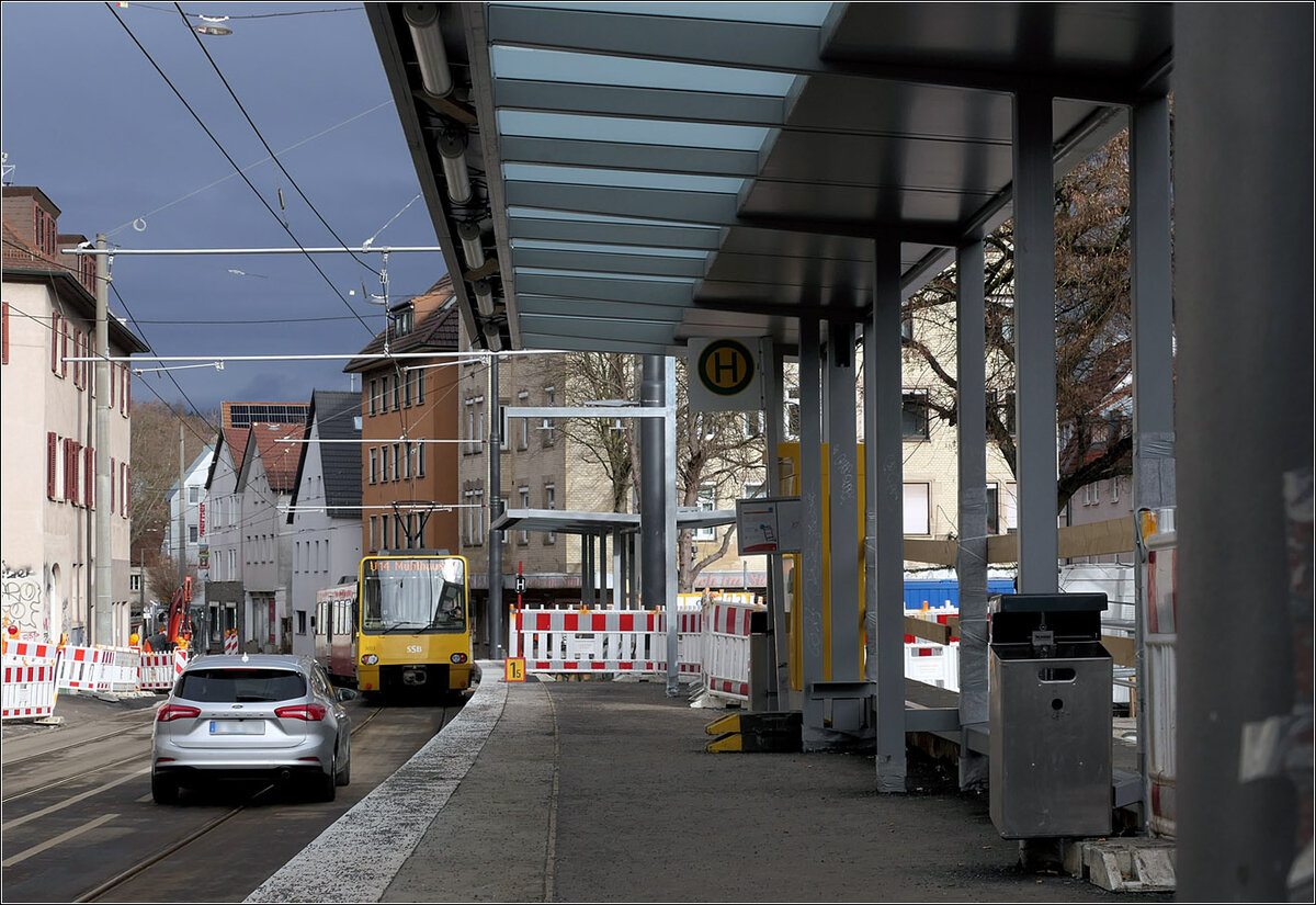 Seit 1983 fahren an dieser Stelle die Bahnen der SSB in das Tunnelnetz der Innenstadt. Mit diesem Abschnitt ging auch die Station 'Rotebühlplatz' in Betrieb, wo zur S-Bahnstation 'Stadtmitte' umgestiegen werden kann. Im Hintergrund ist die Haltestelle 'Berliner Platz/Hohe Straße' erkennbar, die schon etwas in die Rampe heruntergezogen wurde.