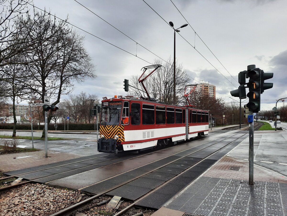 Straßenbahn Reutlingen__ATw 31 mit Niederbord-Bw im Abzweig zum Südbhf.__29-07-1974