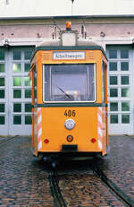 Straßenbahn Neunkirchen/Saar__Blick in die Wagenhalle : ATw 15, ursrüngl. Tw 15 [CEF/Alsthom 1927] und GT4 Nr.4 [ME 1961] der als "Denkmal" auf dem Betriebsgelände der Neunkircher Verkehrsbetriebe landete. GT4 Nr.2 ist im Hannoverschen Straßenbahn-Museum in Wehmingen noch fahrbereit vorhanden.__26-09-1977