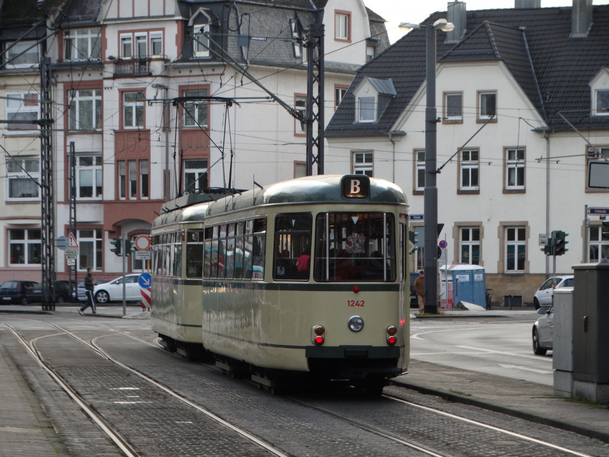 Vor knapp 10 Jahren noch tägliches Stadtbild in Düsseldorf: DüWag GT8 auf der 707. Am Autofreien Sonntag hat die Rheinbahn dann in Zusammenarbeit mit der Linie D verschiedene Oldies auf Linie geschickt. Mit 2656 und einem B4 wurde ein Umlauf auf der 707 besetzt, hier in der Nähe der Haltestelle Dreieck im Düsseldorfer Norden.