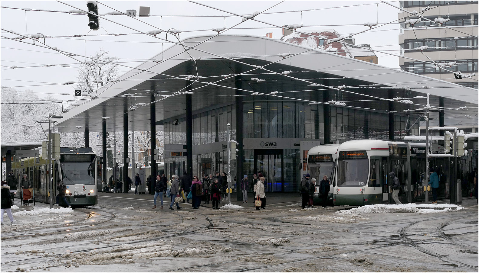 Augsburg Tw 511 an der Hst. Schertlinstraße, 25.02.1999.