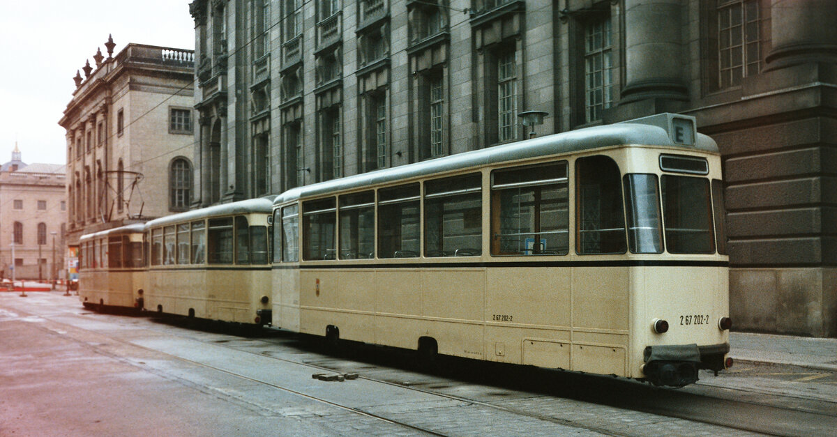 Berlin, Brückenstraße. AEG GT6N-U #1527 erreicht die Haltestelle S Schöneweide. Die Aufnahme stammt vom 15.02.2018.