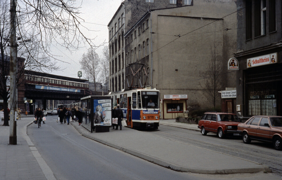 Berlin BVG SL 71 (KT4Dt 9770, ex-219 470, jetzt 7065) Mitte, Hackescher Markt im November 1992. - Scan eines Diapositivs. Kamera: Leica CL.