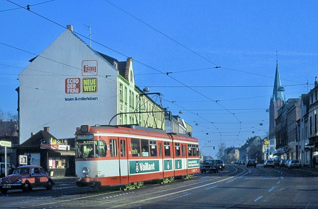 Durch den Bau einer Stadtbahnlinie wird der eingleisige Streckenabschnitt der Linie 310 zwischen Bochum Unterstraße und Witten Papenholz in einigen Jahren verschwunden sein, hier trifft Tw 326 am 11.03.2015 in der Haltestelle Kaltehardt ein
