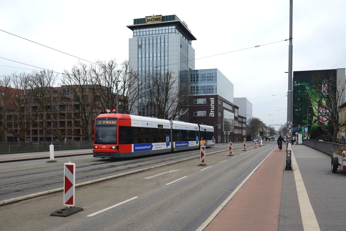 BSAG tw 3123 mit DLRG Landesverband Bremen Werbung am Flughafen Bremen. 26.6.25