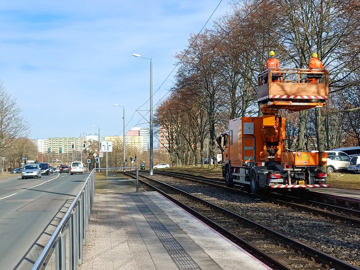 EVAG 4 am 25.05.2024 beim Tag der offenen Tür der EVAG Erfurt auf dem Betriebshof am Urbicher Kreuz. Laut Anschrift ist dieser Arbeitswagen ein Oberleitungsbenetzer, Schienensschleifer, Sandsauger, Schneebschieber und Saubermacher.