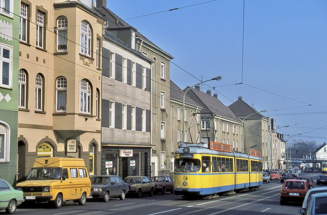 Essen 1115 wendet in der damaligen Endstelle Gelsenkirchen Horst, 03.11.1988.