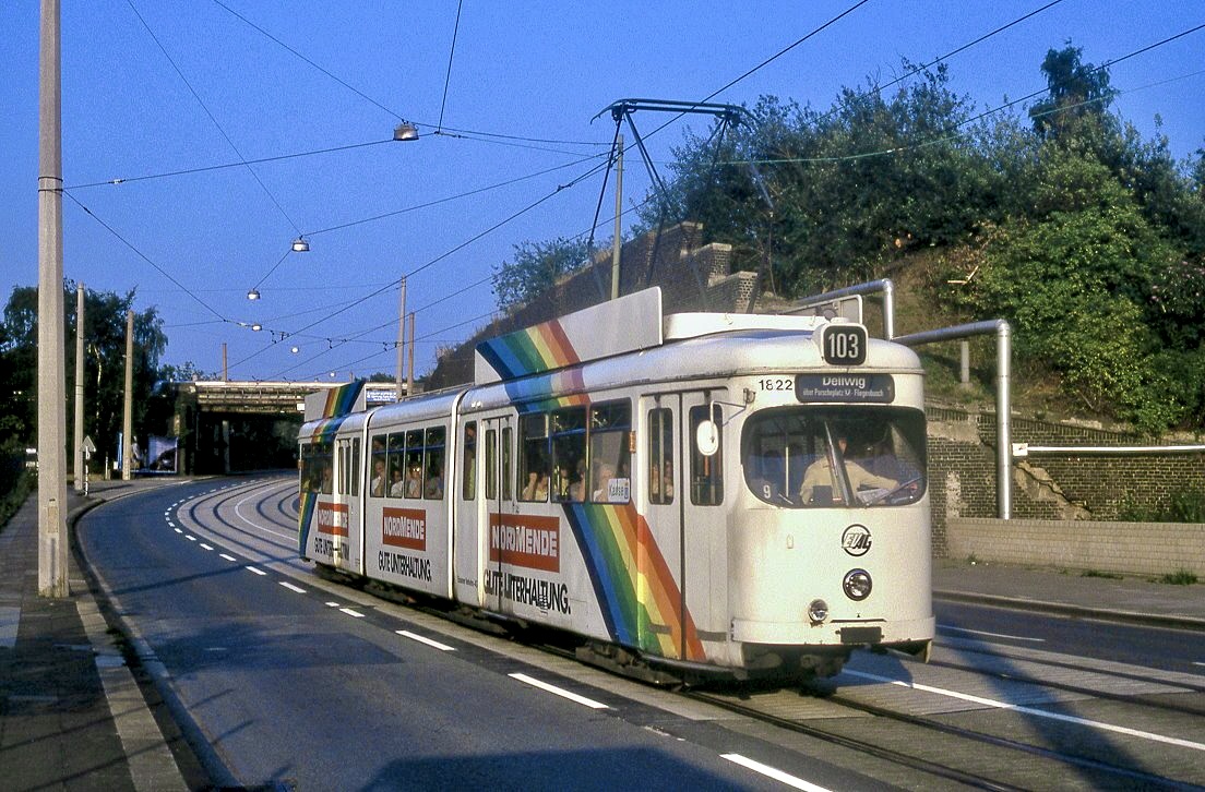 dies ist auch immer eine gute Möglichkeit Straßenbahn und Stadt zusammen zu bringen. Eine Aufnahme mit einem schon zigfach fotografierte Straßenbahntyp wird erst dann in meinen Augen interessant, wenn sie mehr bietet als das bloße Fahrzeug, so wie hier im Hintergrund die Stadtkulisse. Der Blick nach hinten bietet dazu immer wieder eine gute Möglichkeiten dem Umfeld oder auch der Streckenführung Bedeutung zu geben.