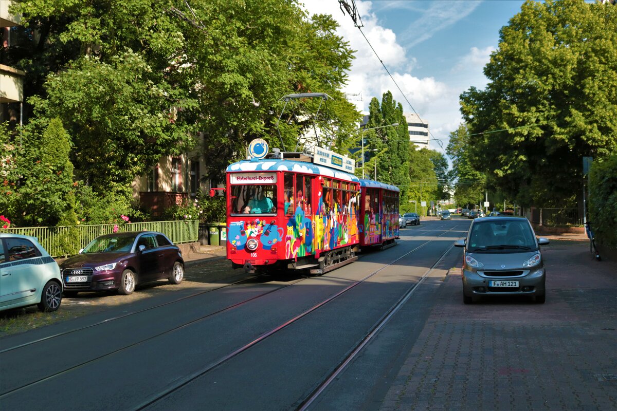 VGF Ebbelwei Express Wagen 108 am 03.08.19 in Frankfurt am Main Willy Brand Platz