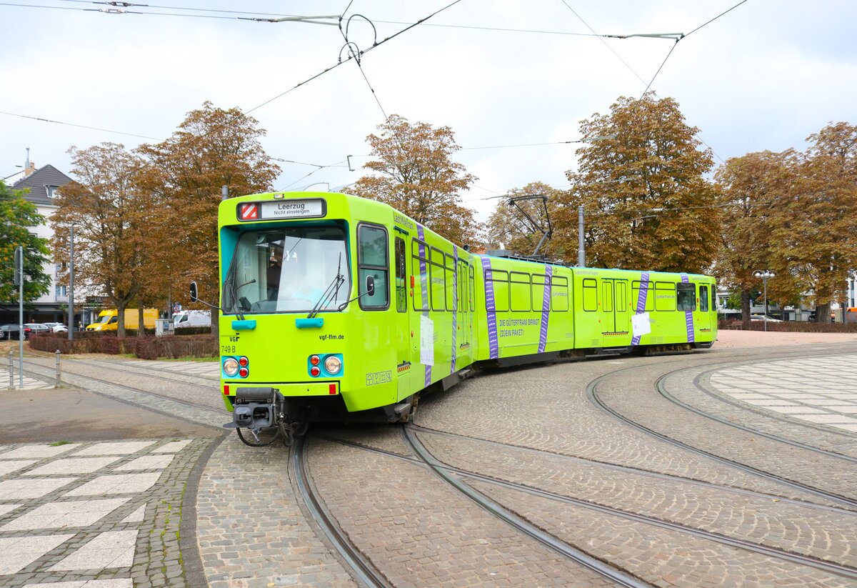 VGF Straßenbahn Frankfurt am Main Düwag Pt-Wagen 749 als Gütertram am 23.09.24 am Zoo