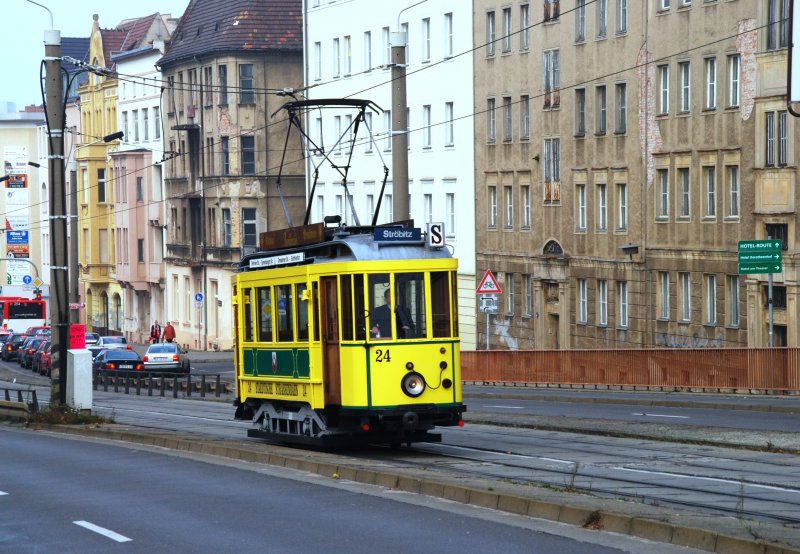 Straßenbahn Görlitz, Niederschlesien__Konvoi historischer Straßenbahnen in der Berliner Straße. Tw 29 [Waggonfabrik Steinfurt, Königsberg 1897; ex Bromberg bis 1909] und Tw 23 [WUMAG, 1928] und Tw ??.__06-1991