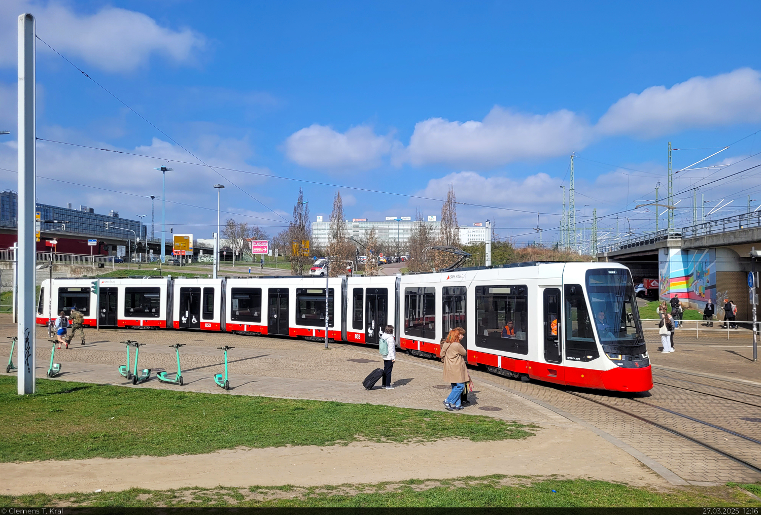 Duewag/Siemens MGT6D, Wagen 607, der Halleschen Verkehrs-AG (HAVAG) steht anlässlich des Tags der offenen Tore in der Straßenbahnwerkstatt des HAVAG Betriebshofs in der Freiimfelder Straße in Halle (Saale).