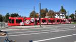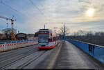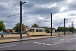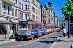 Schlangenlinien muss diese aus den Wagen 618 und 620 gebildete Doppeltraktion von Duewag/Siemens MGT6D fahren, um die Brückenbaustelle in der Mansfelder Straße in Halle (Saale) zu passieren.