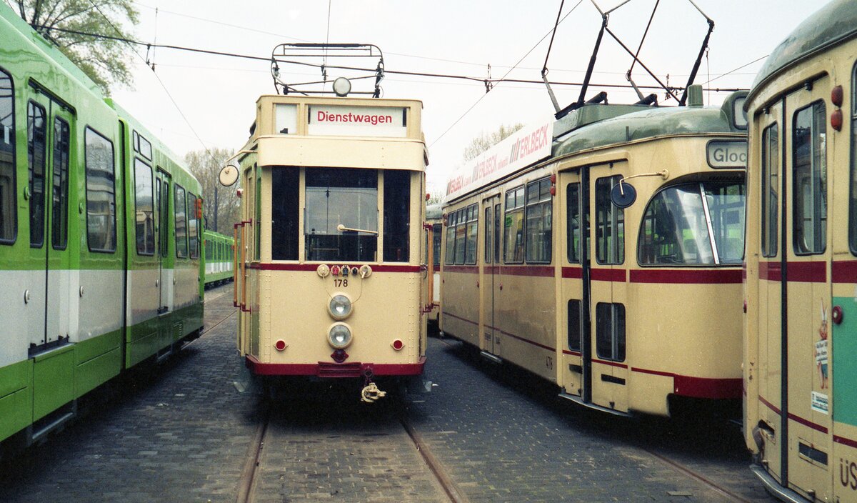 Besuch im Betriebshof Glocksee__Tw 178 [HAWA 1928;als Museumswagen erhalten].__02-05-1989