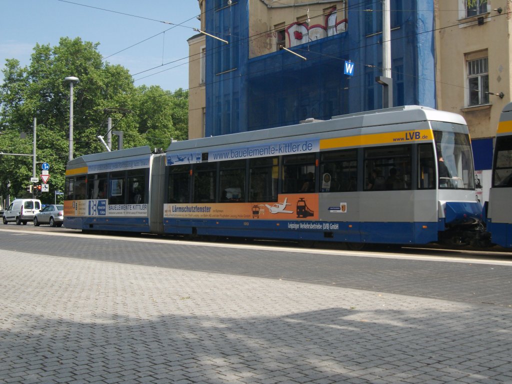 NGT12-LEI (Bombardier Flexity Classic XXL), Wagen 1206, mit Werbung für Lidl, verlässt die Haltestelle Völkerschlachtdenkmal. Von diesem entstand das Foto auch.