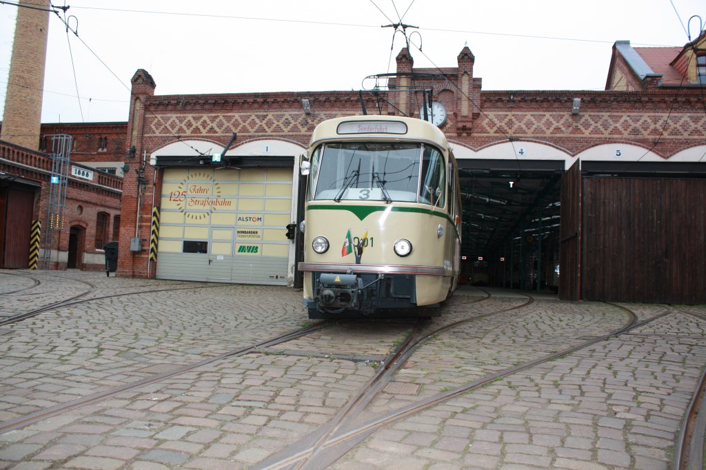 Hier haben wir Triebwagen 1001 im Museumsdepot Sudenburg in Magdeburg