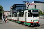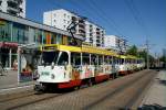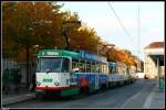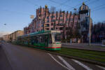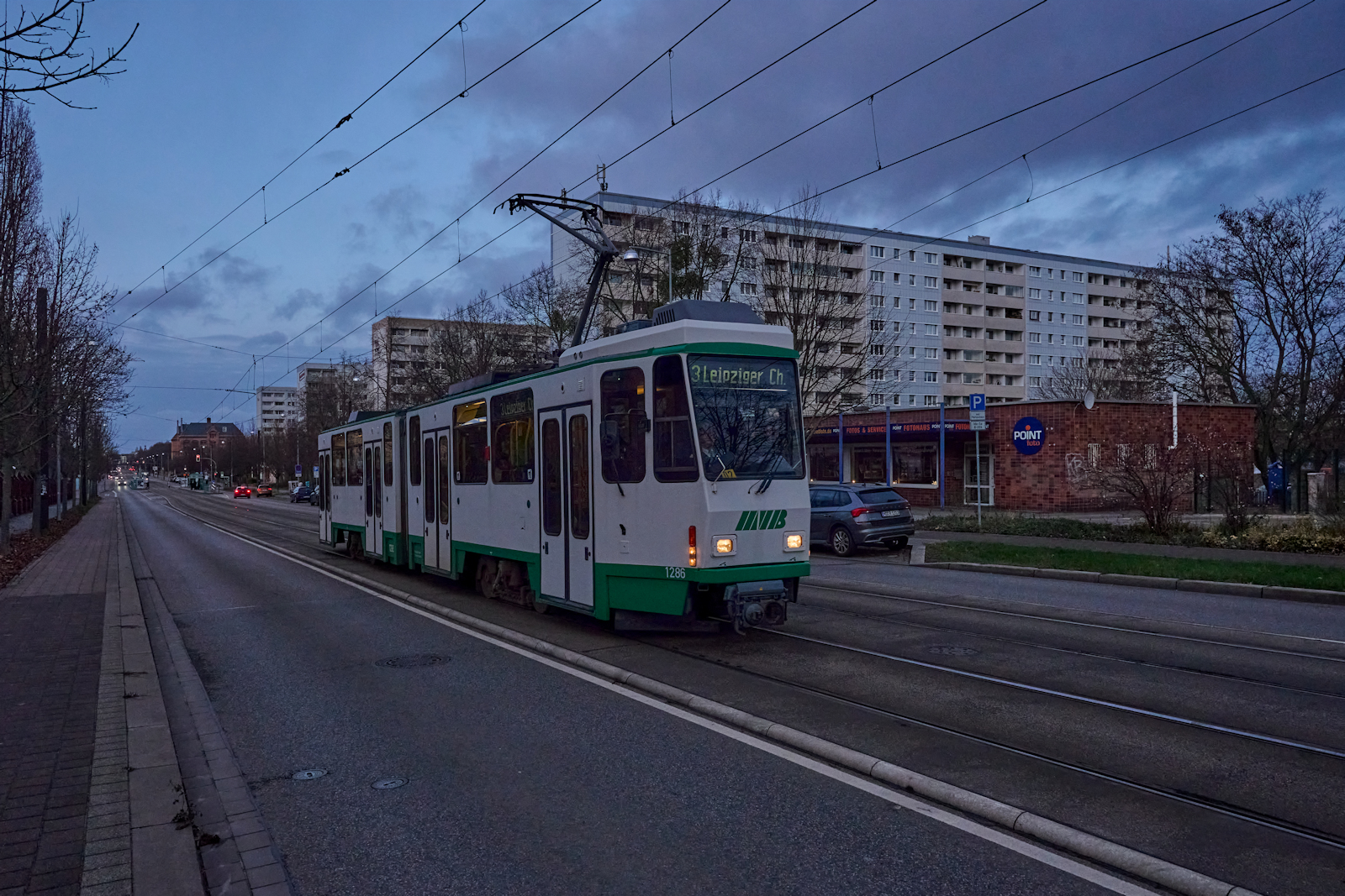 Die KT4D-M der Magdeburger Verkehrsbetriebe kommen in erster Linie auf der Linie 3 unterwegs, welche im Dezember zwischen Sudenburg und der Leipziger Chaussee fuhr. Am 20.12.2024 war Wagen 1286 auf der Leipziger Straße unterwegs und wird gleich die Haltestelle Brenneckestraße erreichen.