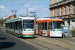 MAGDEBURG, 25.09.2023, Wagen 1320 der MVB als Linie 9 bei der Einfahrt in die Haltestelle Hauptbahnhof