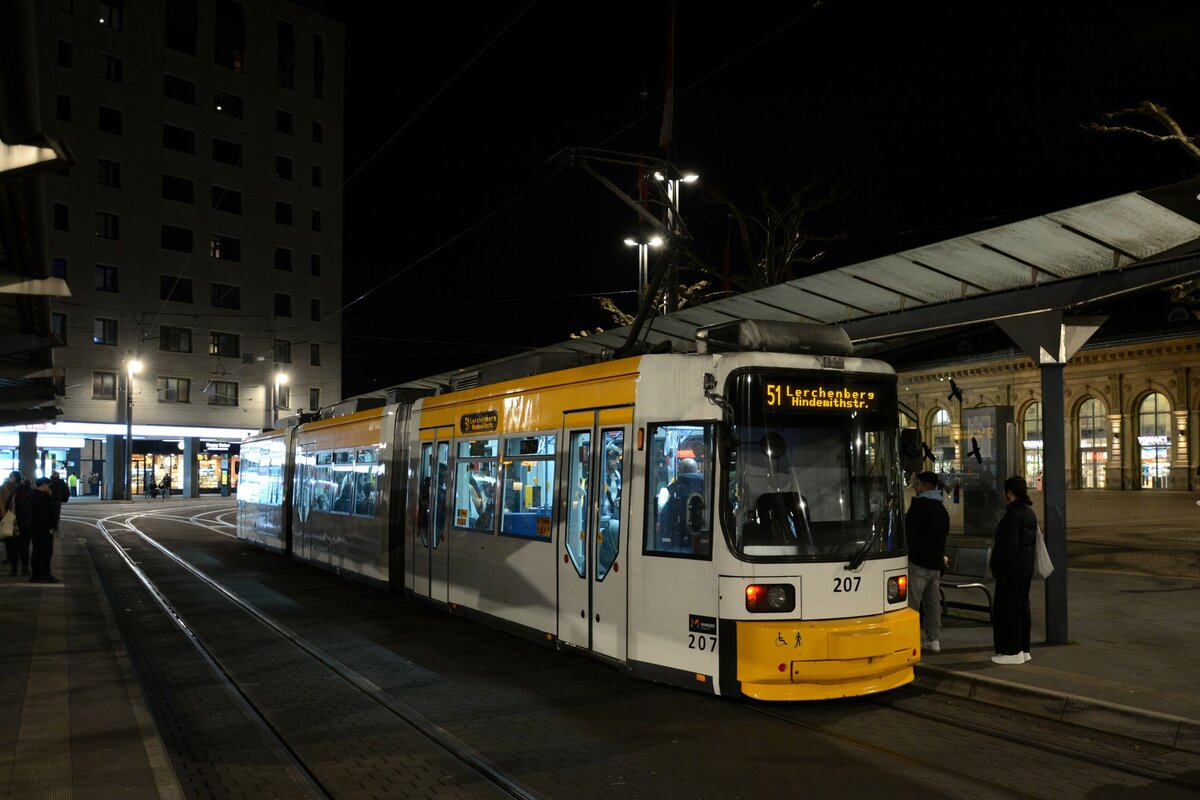 Mainzer Mobilität Adtranz GT6M-ZR Wagen 203 am 11.01.22 in der Innenstadt. An dieser Stelle hält die Straßenbahn im Gefälle