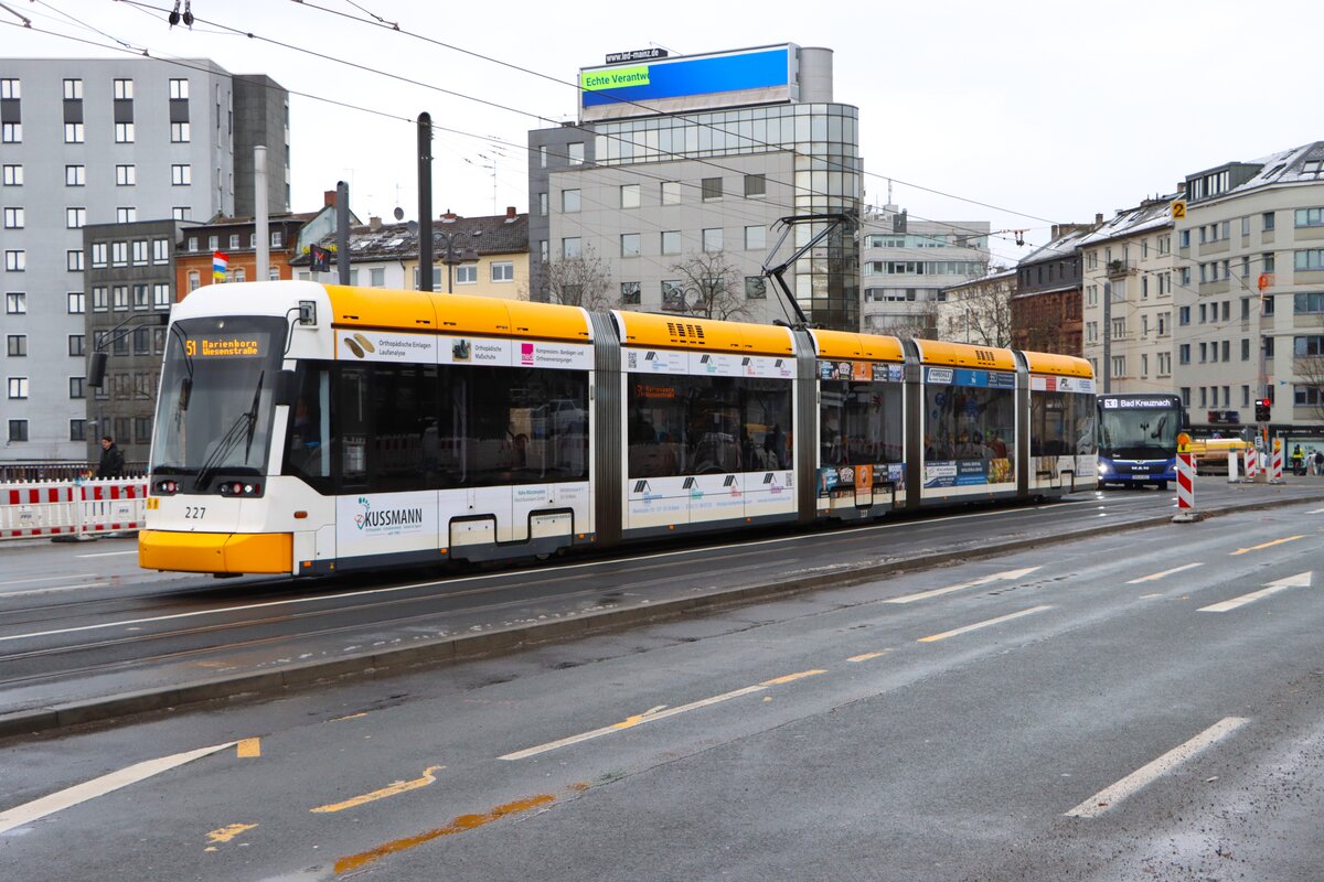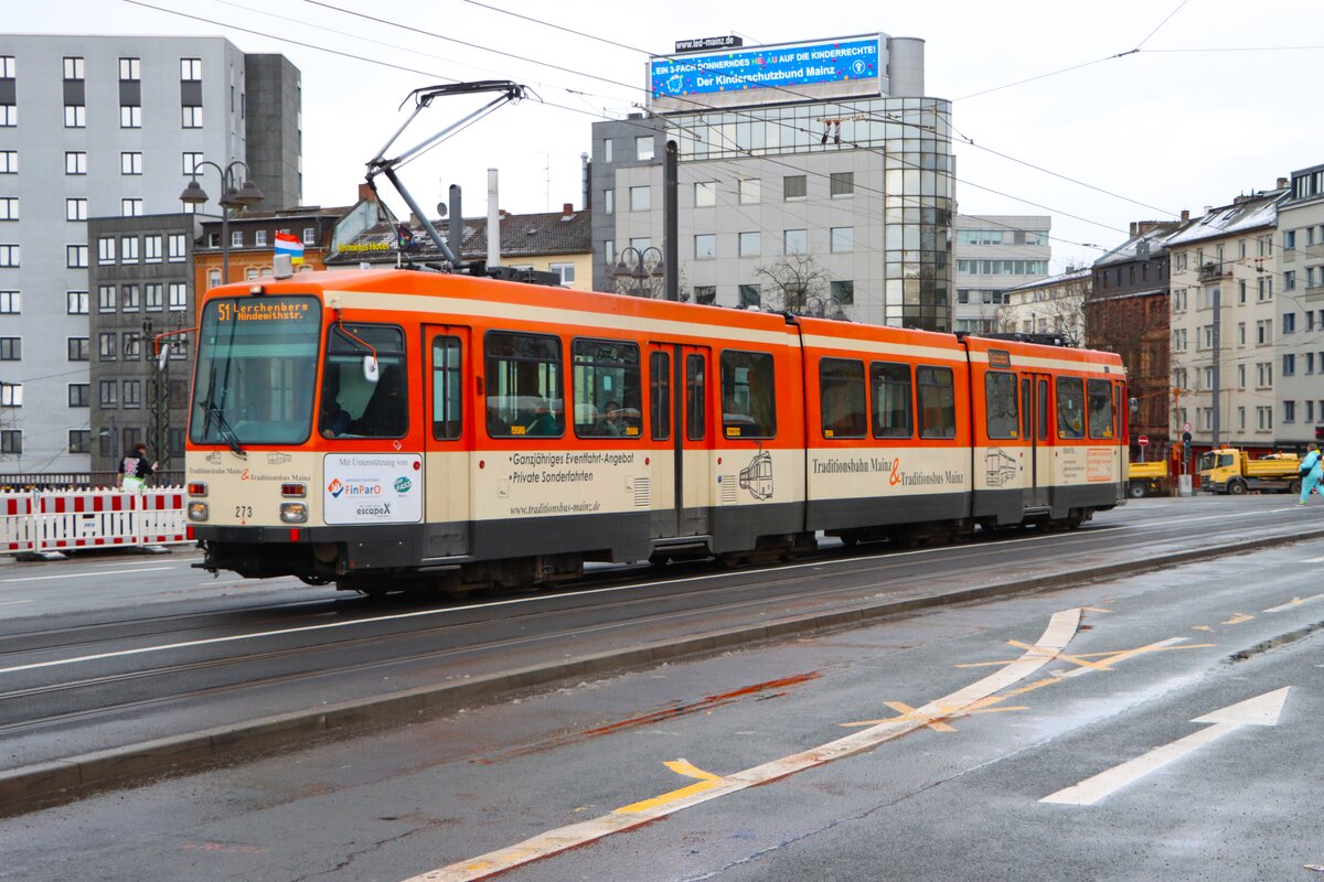 Die Scheinwerfer einer Stadler Variobahn der MVG am 20.03.14 in Mainz