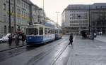 München MVV Tramlinie 19 (M5.65 2504) Pasing, Landsberger Strasse / Marienplatz im April 1990.