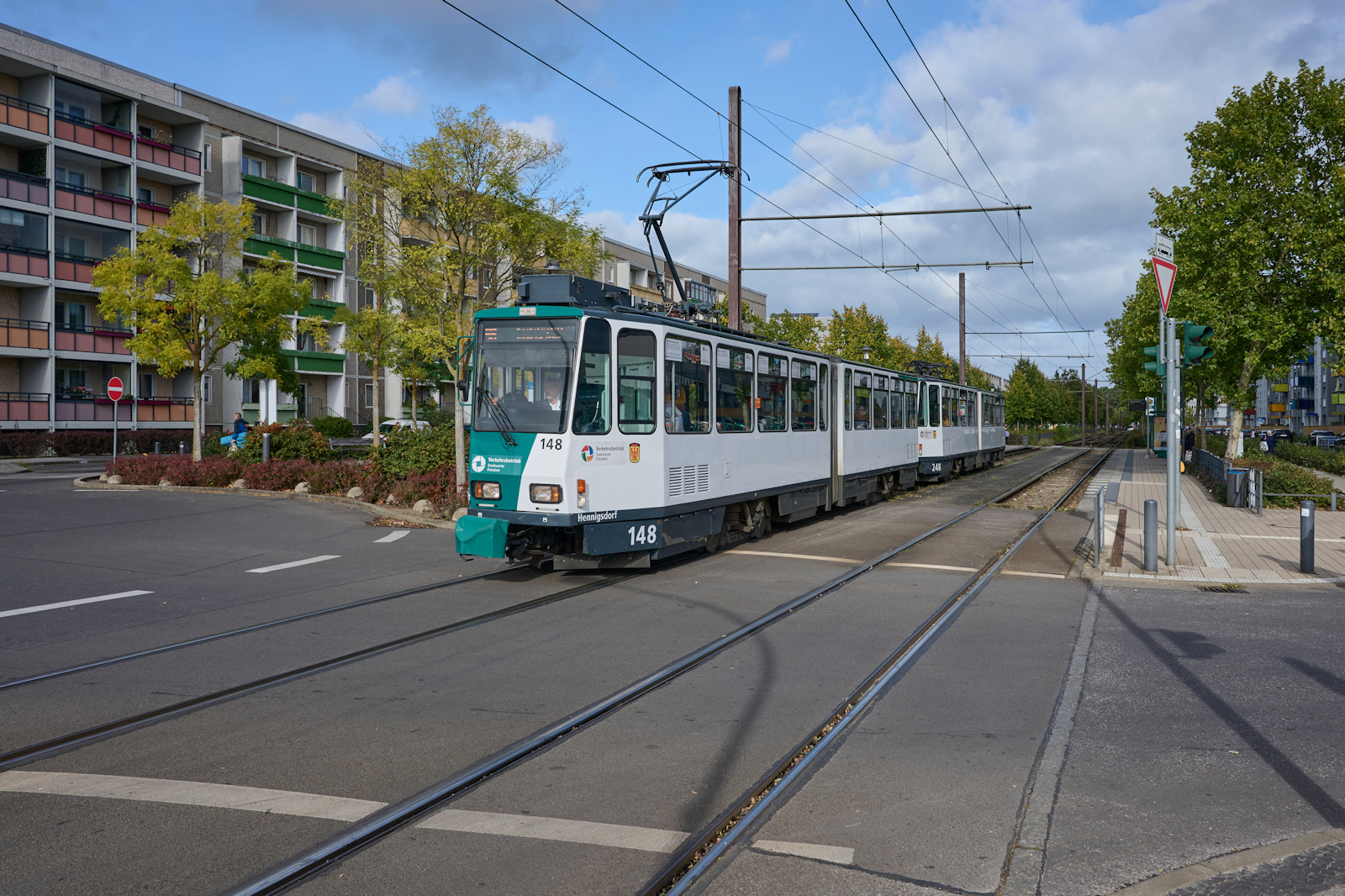 ViP-Verkehrsbetrieb Potsdam GmbH mit der Stadler Variobahn Wagen 423 ''Luzern'', hier auf der Linie 94. Potsdam, Platz der Einheit/West im Juni 2022.