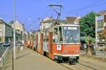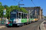 Potsdam VIP KT4D 153 + 253 als Linie 96, Lange Brücke, 16.10.2024.