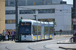 Auf dem Weg vom Hauptbahnhof zur Kirschallee fuhr der Potsdamer Tw 407 am 06.10.2025 durch das Nauener Allee.