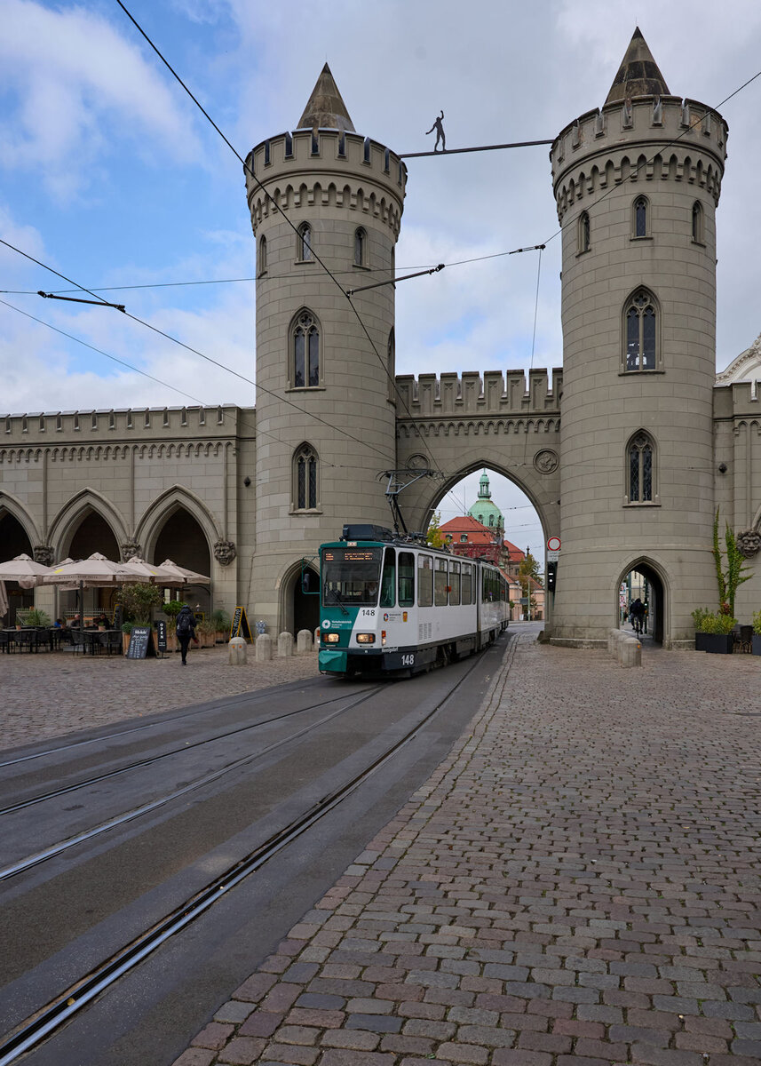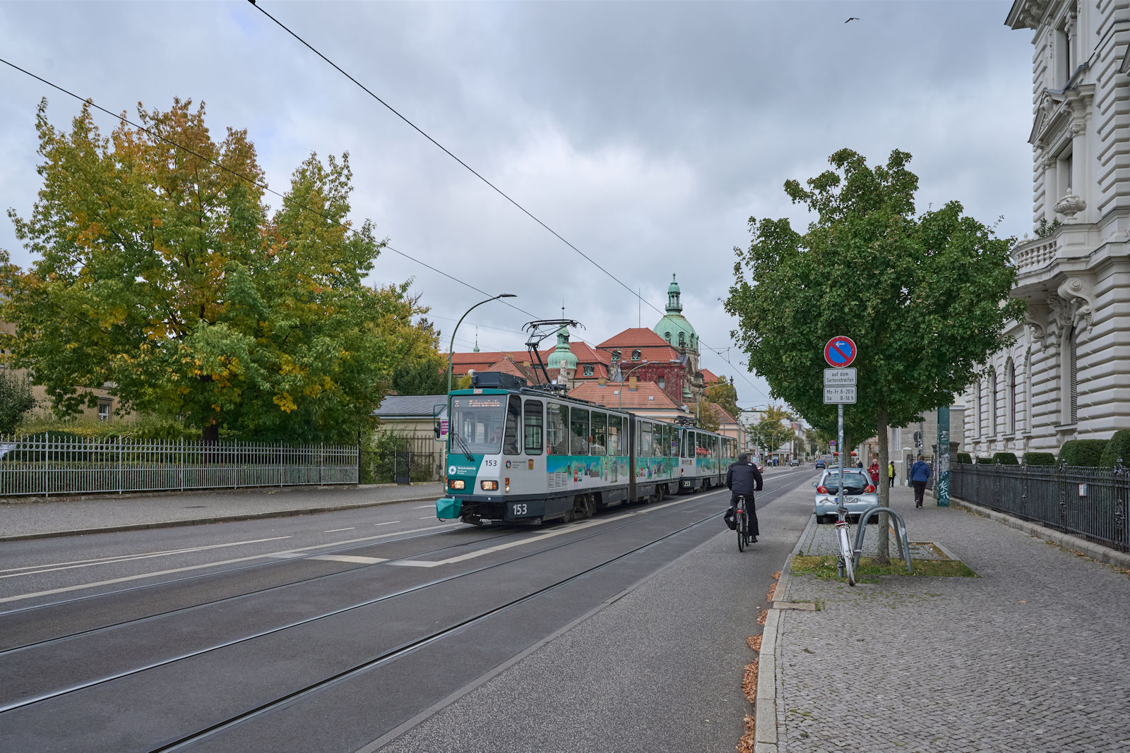 Tatra KT4D (mod.), Nr. 152 am 05.02.2014 in Potsdam an der Haltestelle Betriebshof Babelsberg.