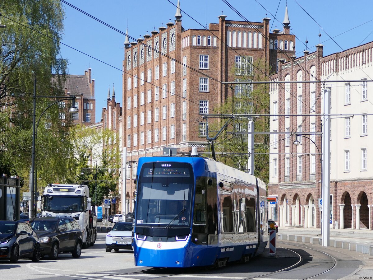 Rostock RSAG SL 6 (DÜWAG/DWA-6NGTWDE 686) Neuer Markt am 19. Juli 2013.