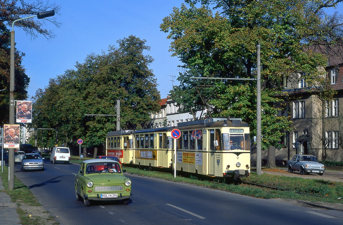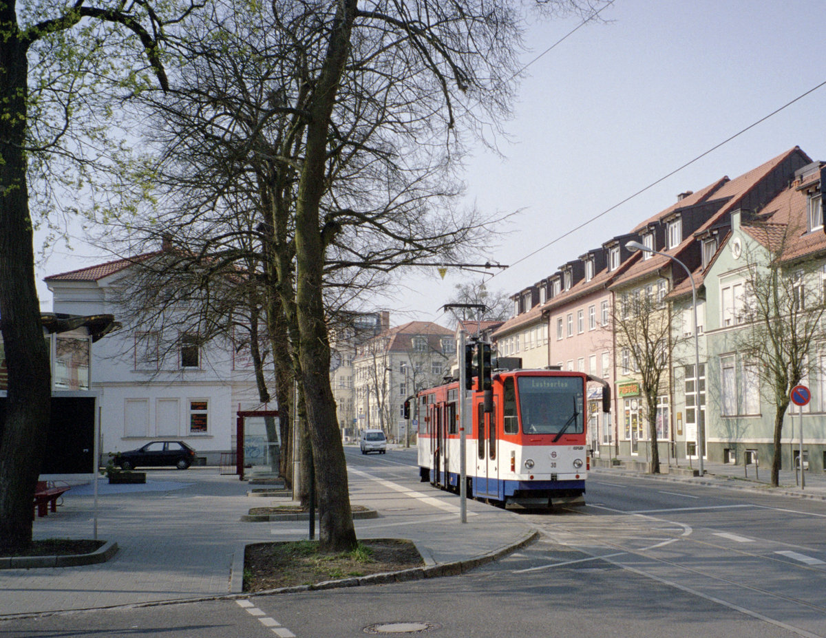 Strausberg Strausberger Eisenbahn GmbH SL 89 (Tw 30) Lustgarten / August-Bebel-Strasse am 1. April 2007.