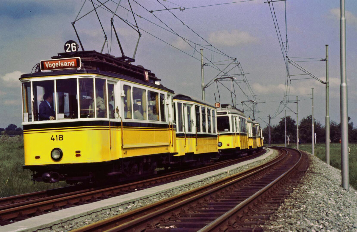 SSB Stuttgart__50 Jahre Straßenbahn (Linien 1/11) nach Fellbach 05.05.1929 / 05.05.1979. Tw 418 [ME 1925] mit Bw 1241 an der Endstation Fellbach.