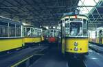 SSB Stuttgart__DoT4 906 als Linie 8 in der oberen Halle im Betriebshof Ostheim.__30-03-1974