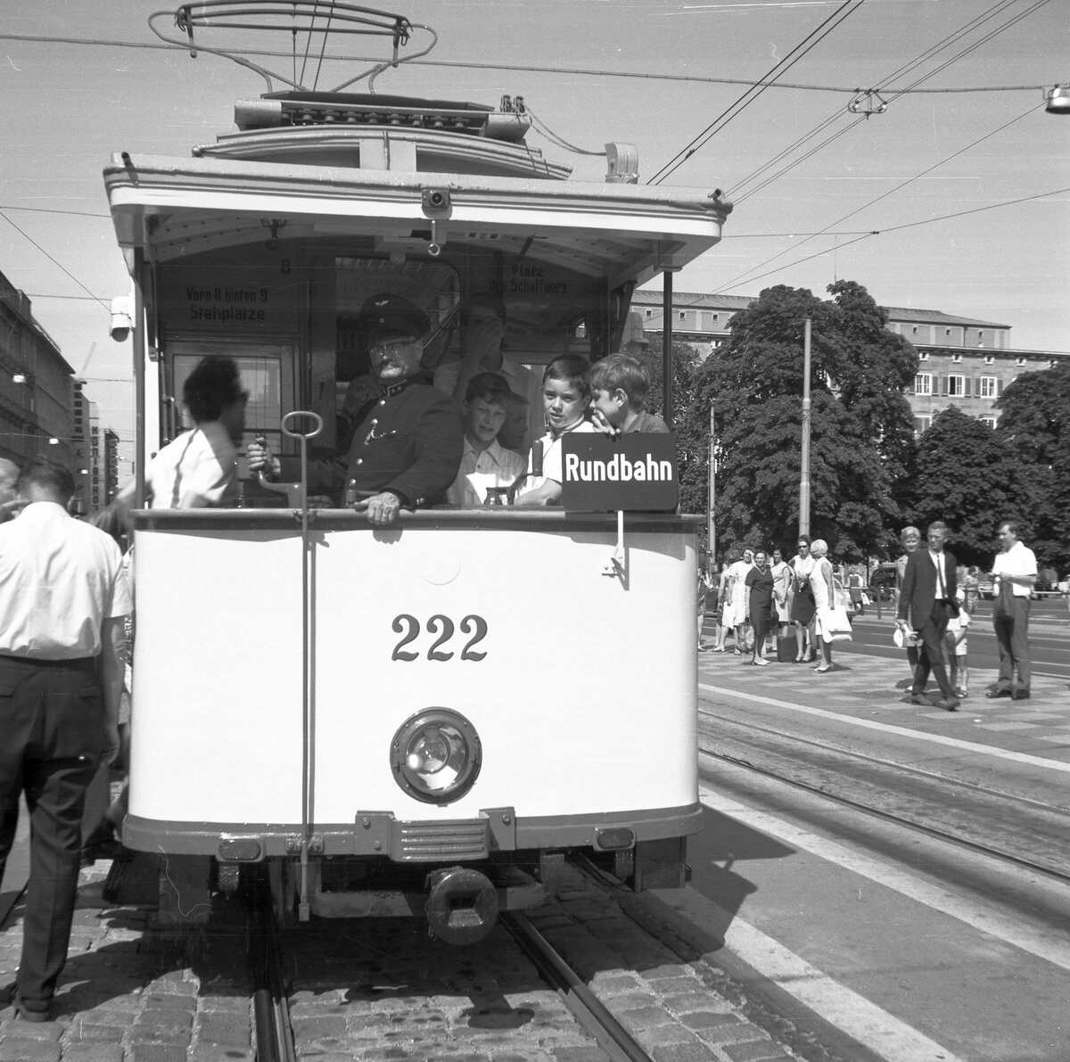 SSB Stuttgart__Das Wetter paßte, der Tw 222 war auf seinen Rundfahrten im Juli 1968 immer gut besetzt zwischen (Schleife Hbf Nordausgang)-Schloßplatz-Stuttgart Berg.__07-1968 Klaus-Erich Lisk